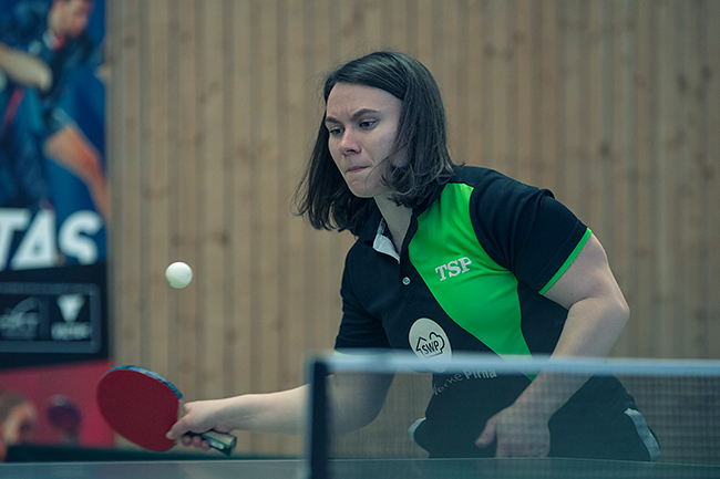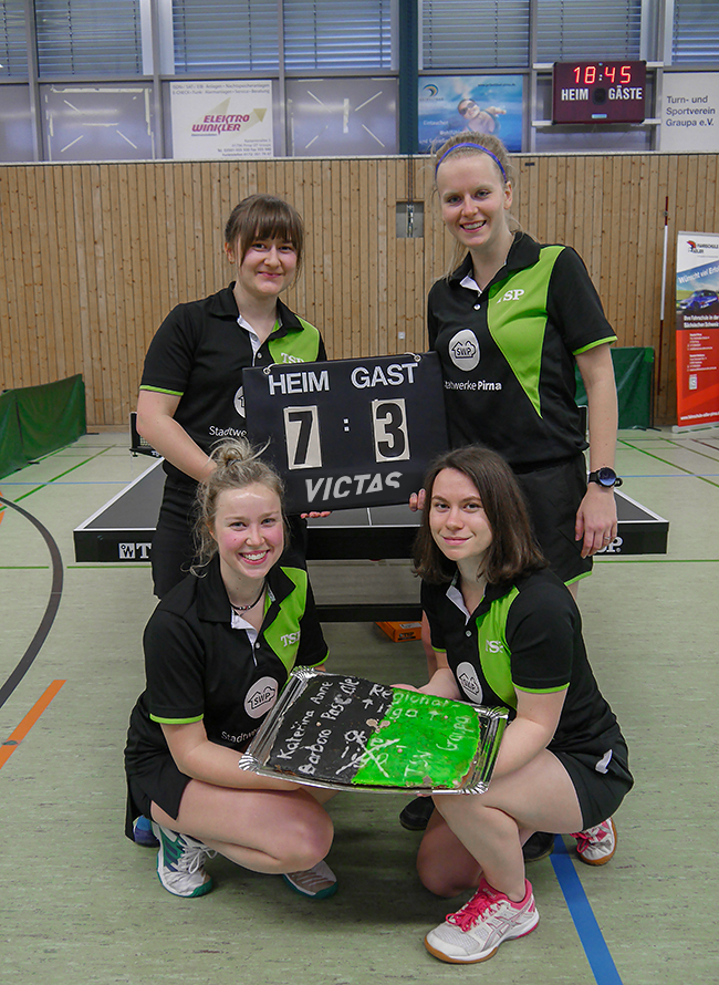 Dafür war allerdings ein ordentliches Stück Arbeit notwendig, denn die nur zu dritt angereisten Gäste aus Thüringen erwiesen sich als sehr spielstark. Besonders die Nr. 1 Denise Husung ließ sich von der Stärke unseres oberen Paarkreuzes überhaupt nicht beeindrucken und nahm gemeinsam mit ihrer Partnerin Heidi Hildebrand zuerst dem Doppel Katerina und Anne den Punkt ab und setzte in der ersten Einzelrunde ein Achtungszeichen, als sie Barbora glatt mit 3:0 vom Tisch abtreten ließ.