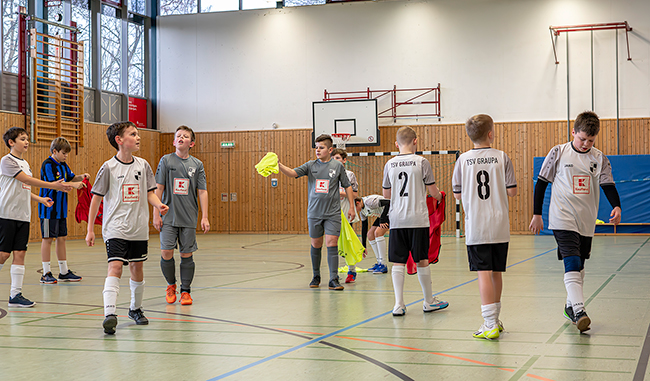 Im Anschluss startete unsere „kleines“ internes Hallenturnier mit 8 Mannschaften, 3 gegen 3 a 6 Minuten und jeder gegen jeden. Ein „All Star“ Team, bei dem u.a. die Trainer mitspielten, gab es auch. Immerhin dauerte es 3 Stunden, bis der Sieger feststand.