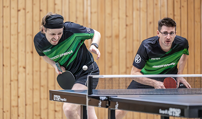 Dem folgten Anna/Peter im dritten Doppel, bei welchem sich beide phasenweise schwer taten, aber im entscheidenden Satz einen kühlen Kopf bewahrten und ebenfalls mit 3:2 gegen Votava/Schneider als Sieger vom Tisch gingen.