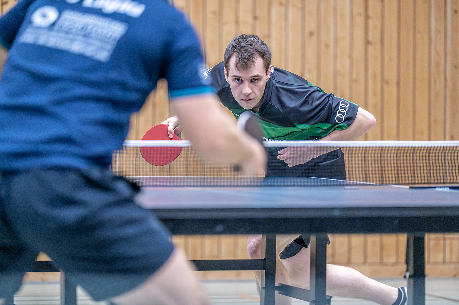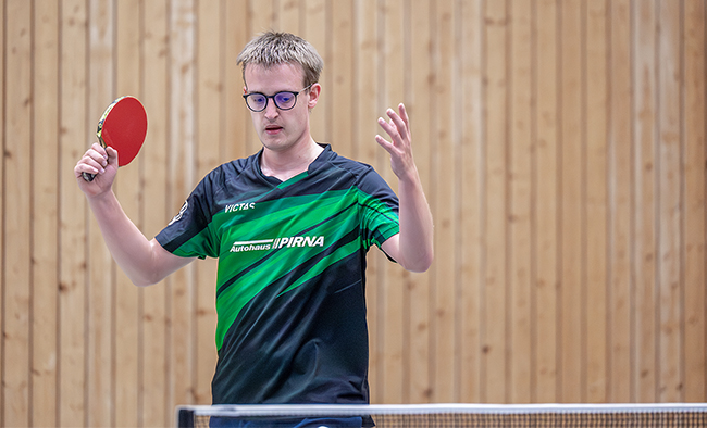 und auch Florian wurde durch das sachsenligaerfahrene Abwehrbollwerk Berndt (1:3) gestoppt. Im unteren Paarkreuz setzte sich Erik im Materialduell gegen Engelhardt (3:1) durch.
